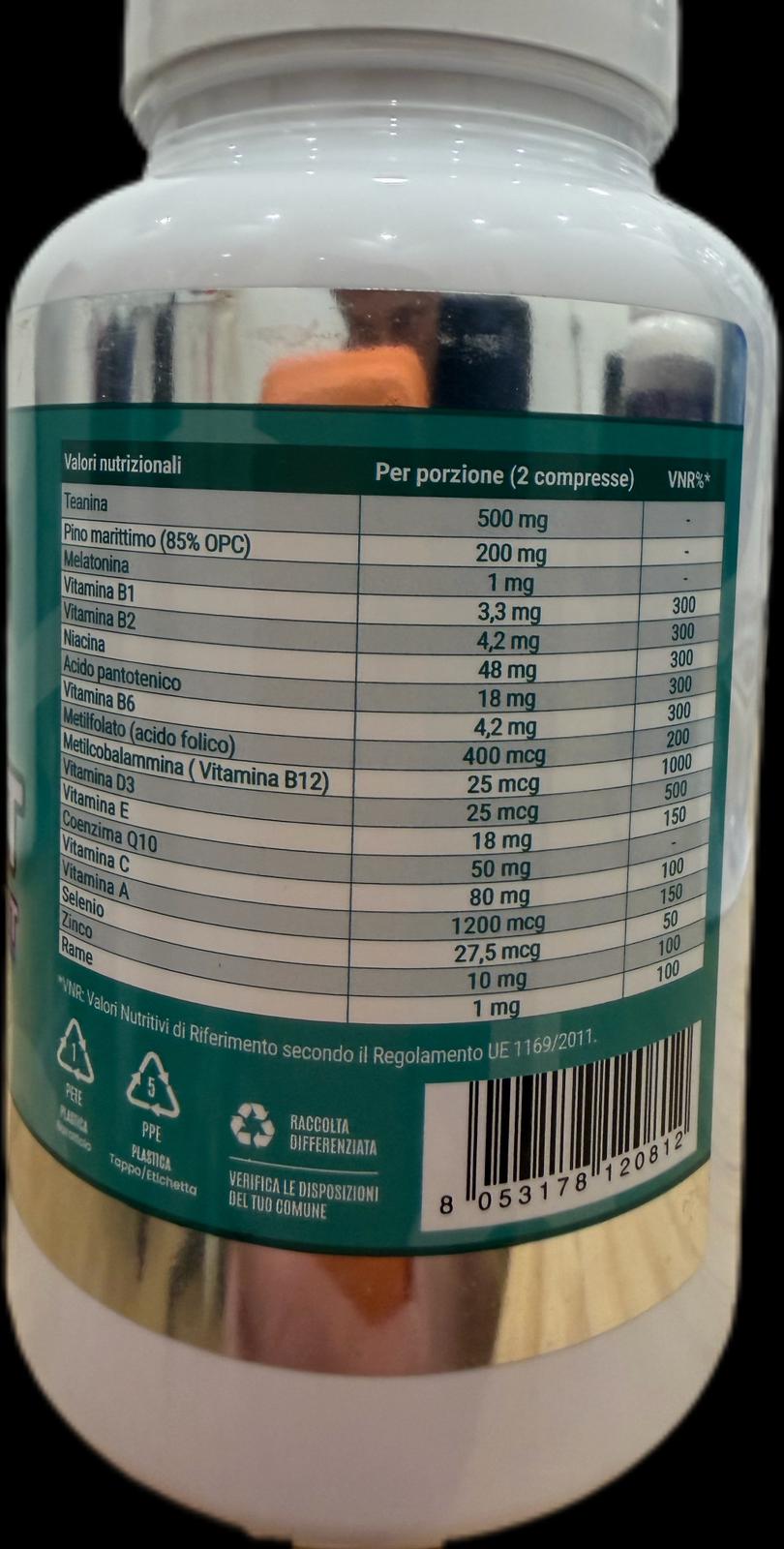 •Equilibrio ormonale e nervoso: magnesio, zinco e vitamine del gruppo B supportano il sistema nervoso e il rilascio ormonale fisiologico notturno.